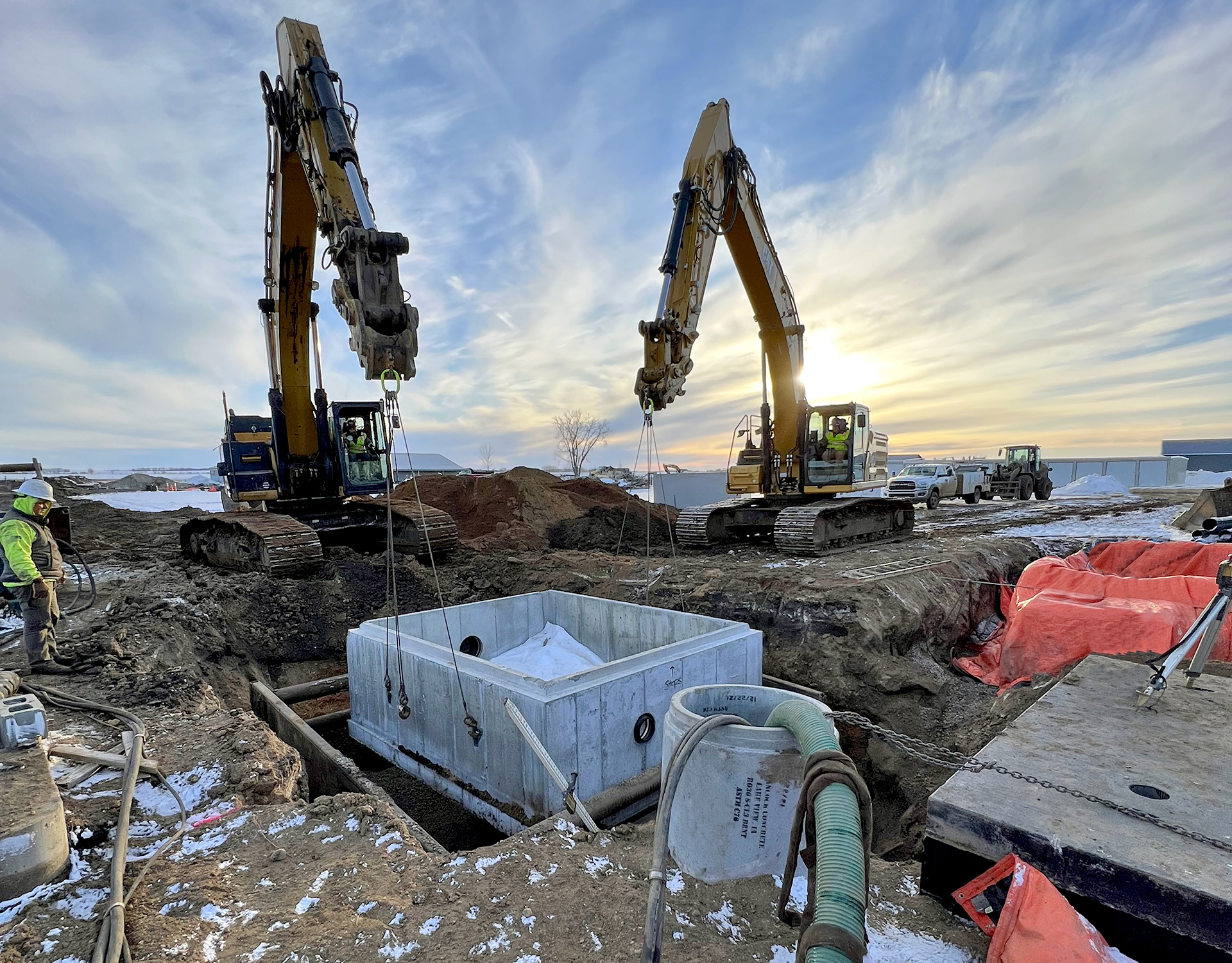 This project was primarily a lift station and forcemain replacement project. A 10' x 10' concrete submersible style lift station structure was installed approximately 25' deep next to the existing lift station. The existing lift station was retrofitted to provide additional hydraulic capacity ahead of the new lift station. Following the new lift station, a new 10' x 12' concrete vault was installed to house the effluent lift station valves, fittings and a flow measurement meter. The addition of accurate, reliable flow measurement to the lift station will allow the City to quantify their wastewater flows in order to better operate their wastewater system as well as to plan for future infrastructure improvements. Following the vault, 2,100-ft of 10-inch forcemain was installed to convey the wastewater from the new lift station to the existing treatment ponds. Modifications to the existing valve vault provide the ability to hook up an additional pump and utilize the existing 6-inch forcemain as emergency back-up piping when needed.
