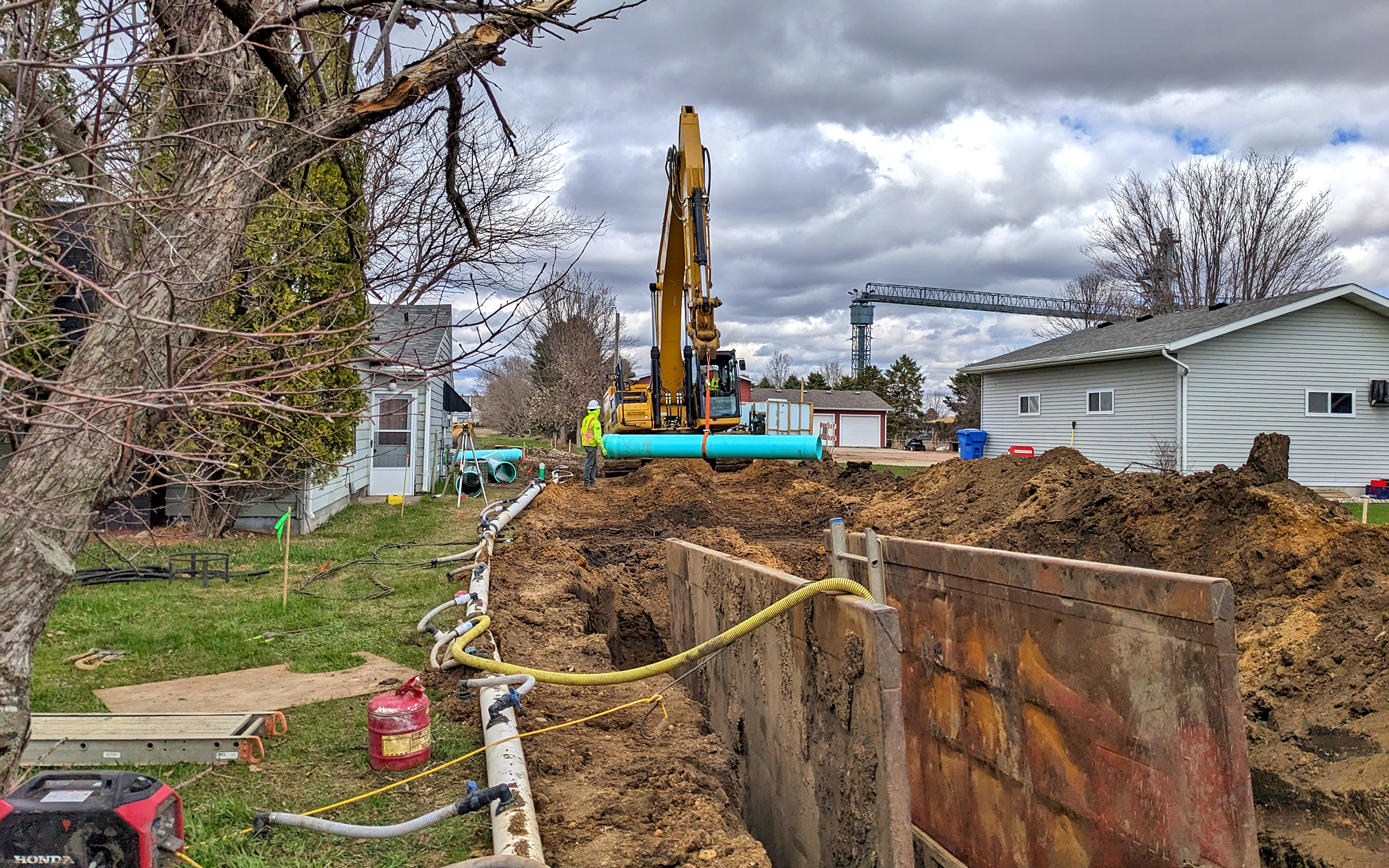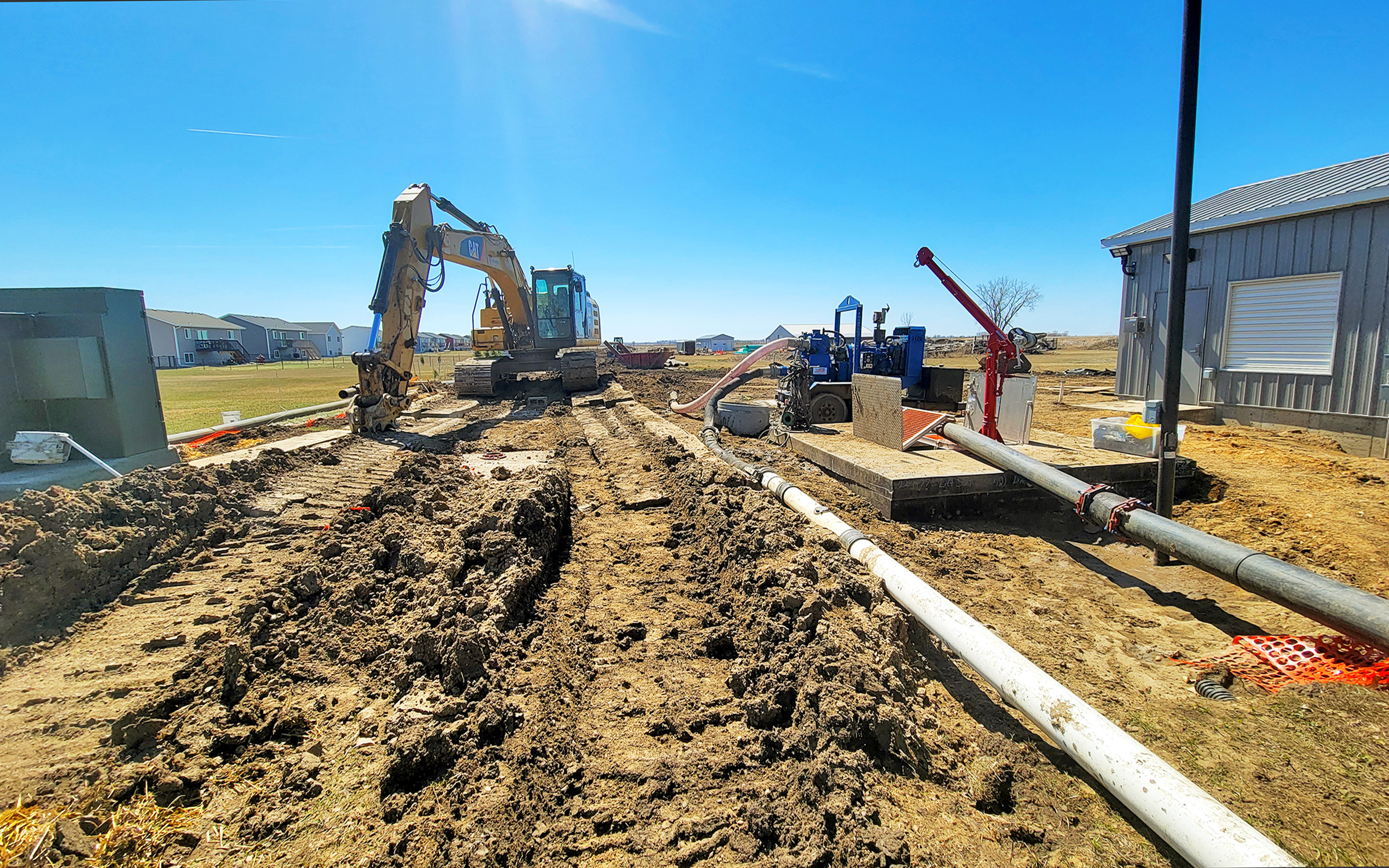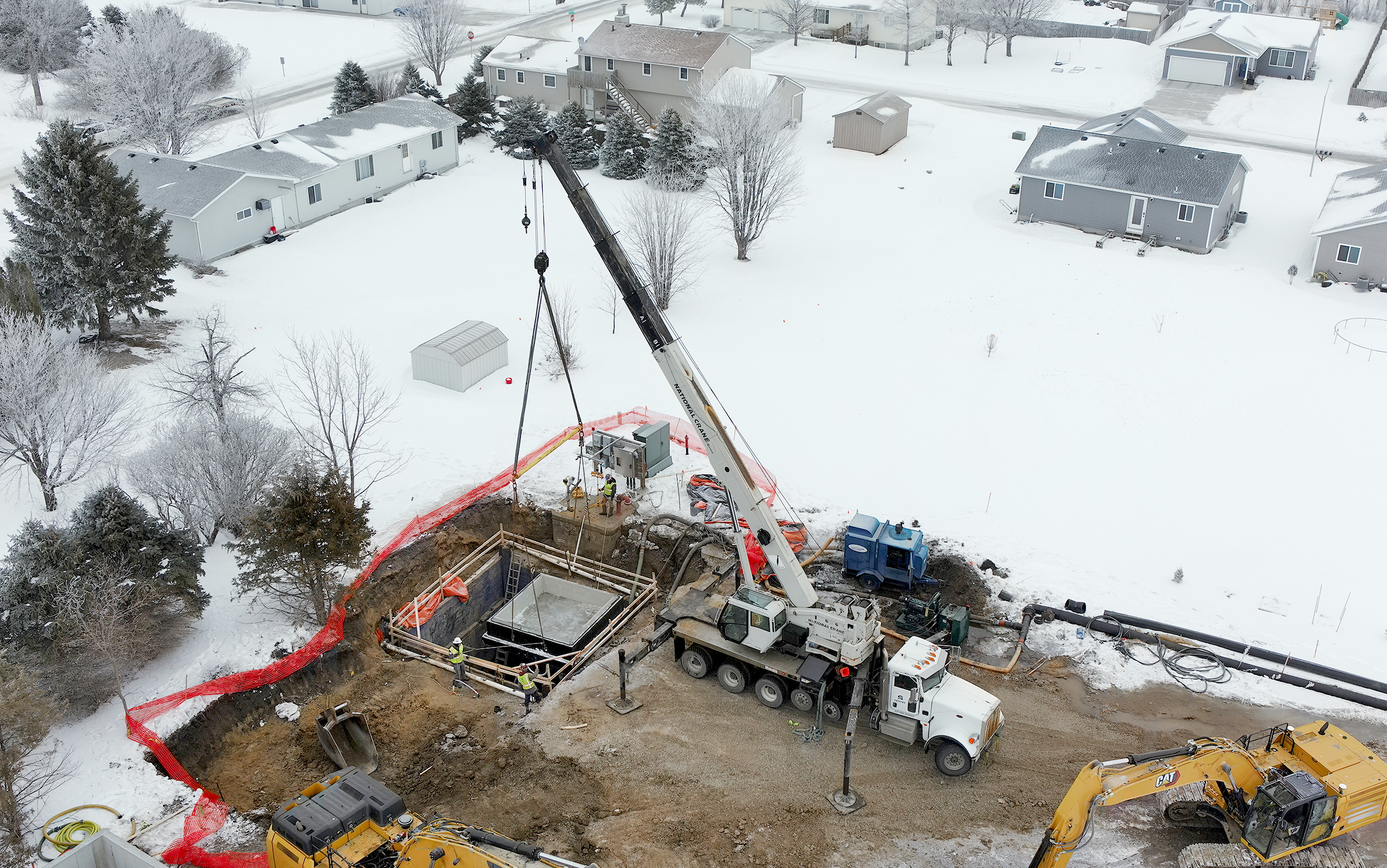 This project was primarily a lift station and forcemain replacement project. A 10' x 10' concrete submersible style lift station structure was installed approximately 25' deep next to the existing lift station. The existing lift station was retrofitted to provide additional hydraulic capacity ahead of the new lift station. Following the new lift station, a new 10' x 12' concrete vault was installed to house the effluent lift station valves, fittings and a flow measurement meter. The addition of accurate, reliable flow measurement to the lift station will allow the City to quantify their wastewater flows in order to better operate their wastewater system as well as to plan for future infrastructure improvements. Following the vault, 2,100-ft of 10-inch forcemain was installed to convey the wastewater from the new lift station to the existing treatment ponds. Modifications to the existing valve vault provide the ability to hook up an additional pump and utilize the existing 6-inch forcemain as emergency back-up piping when needed.
