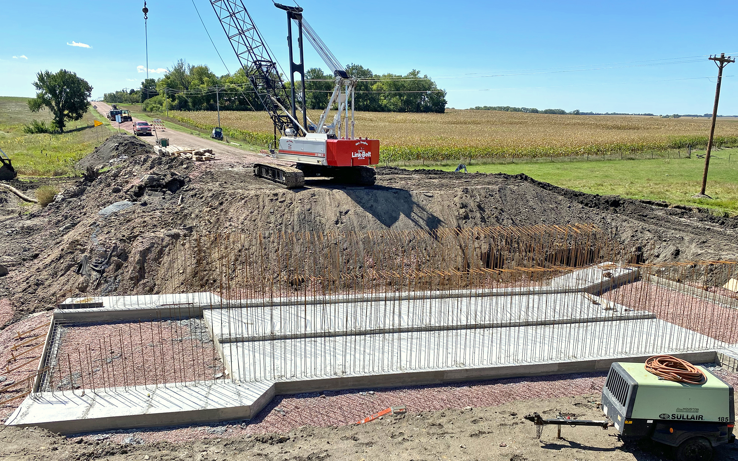 The structure is a double barrel 11' x 9' cast-in-place box culvert over North Buffalo Creek located on County Road 21 south of Lake Madison in Lake County, SD. The structure design consisted of the top slab, walls, bottom slab and wingwalls using Eriksson Culvert software. A structure load rating was performed using AASHTOWare BrR. Banner created construction documents/plans following DOT format.