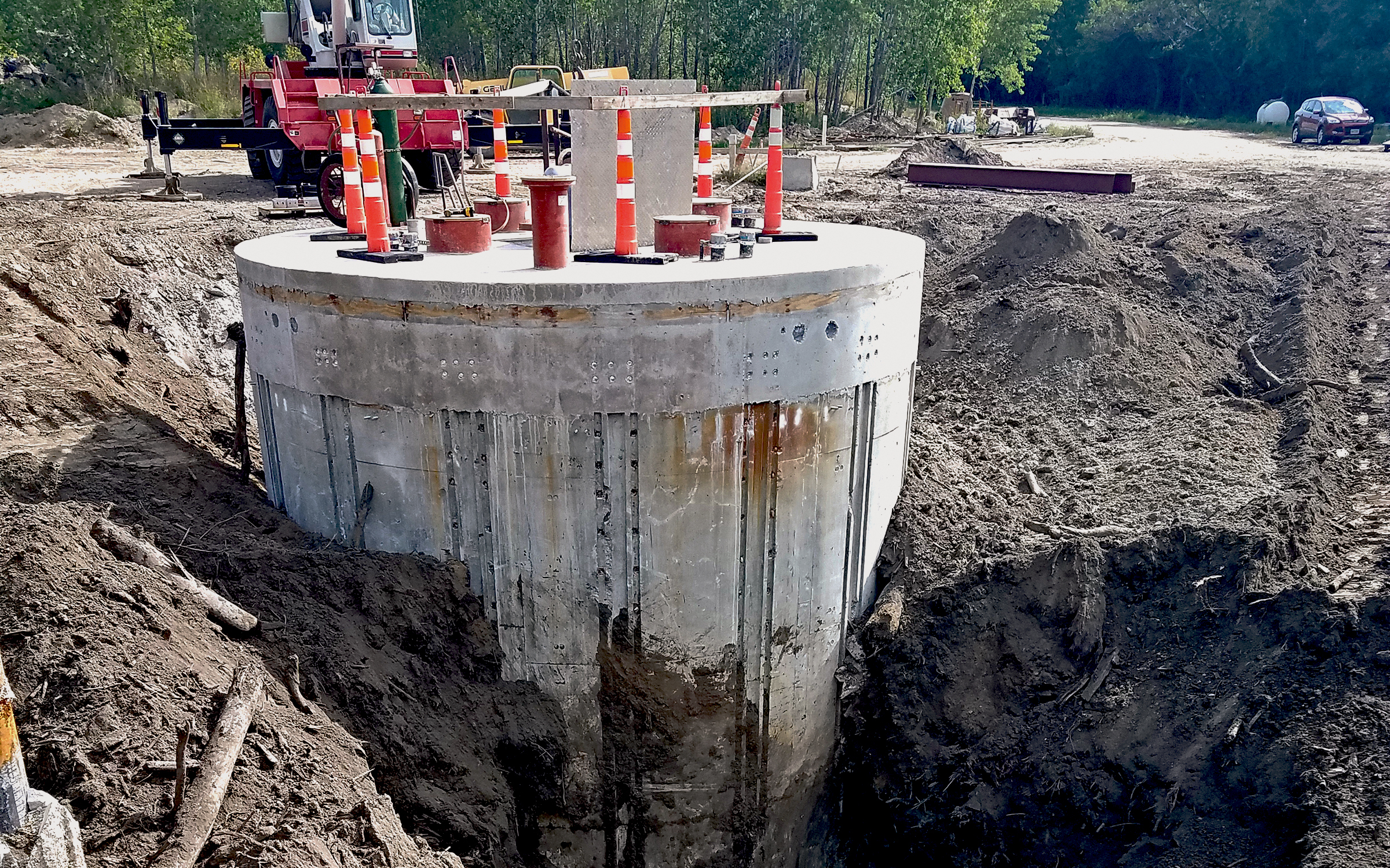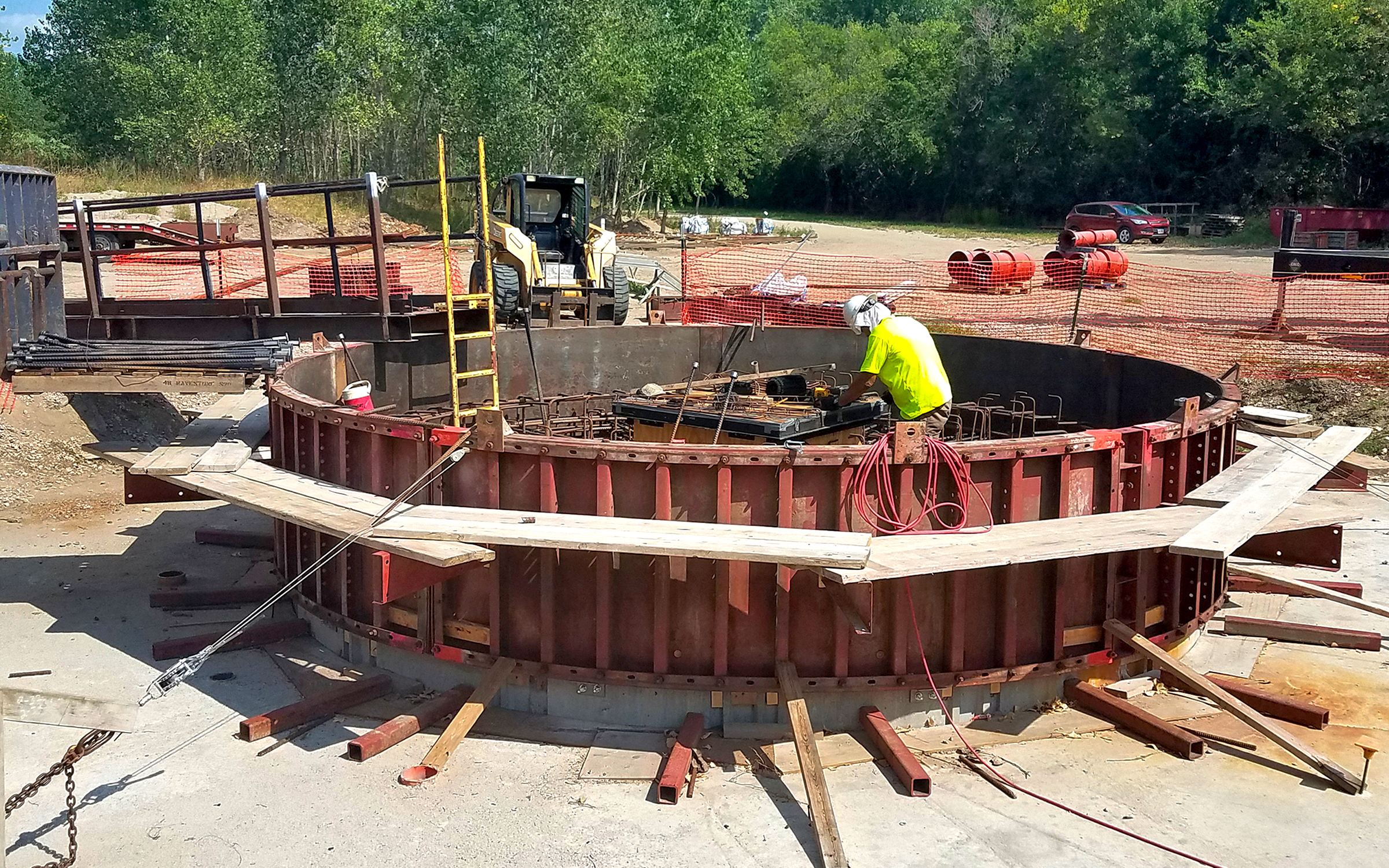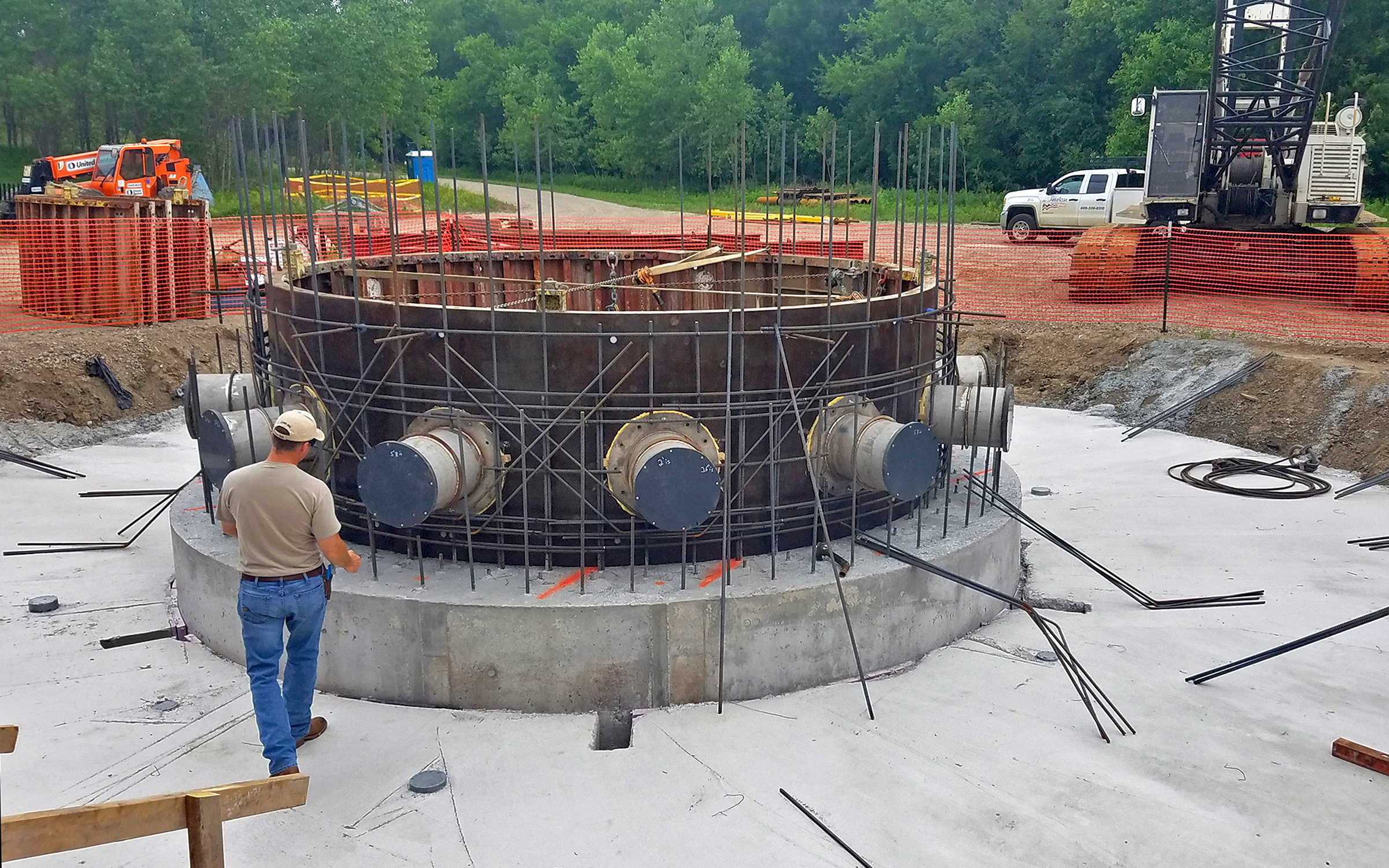 The collector well is a vertical caisson with horizontal screens at the bottom pushed out into the aquifer. On top of the caisson there is the pump station with vertical turbine pumps. The building is supported by buttresses attached to the caisson so the building will not move relative to the caisson. Banner performed the design of the buttresses up through the design of the building. (Contractor was responsible for the caisson design)