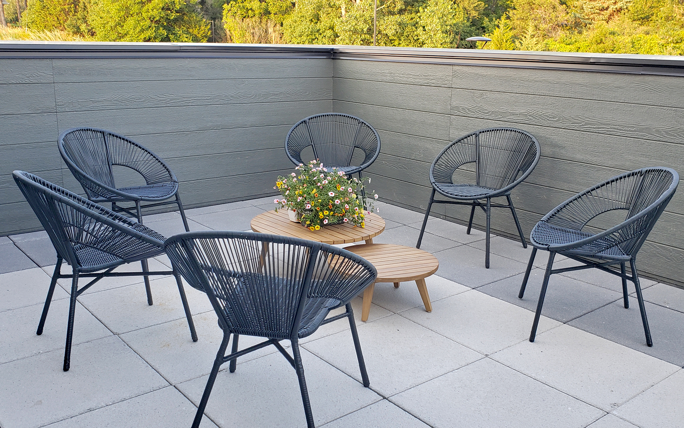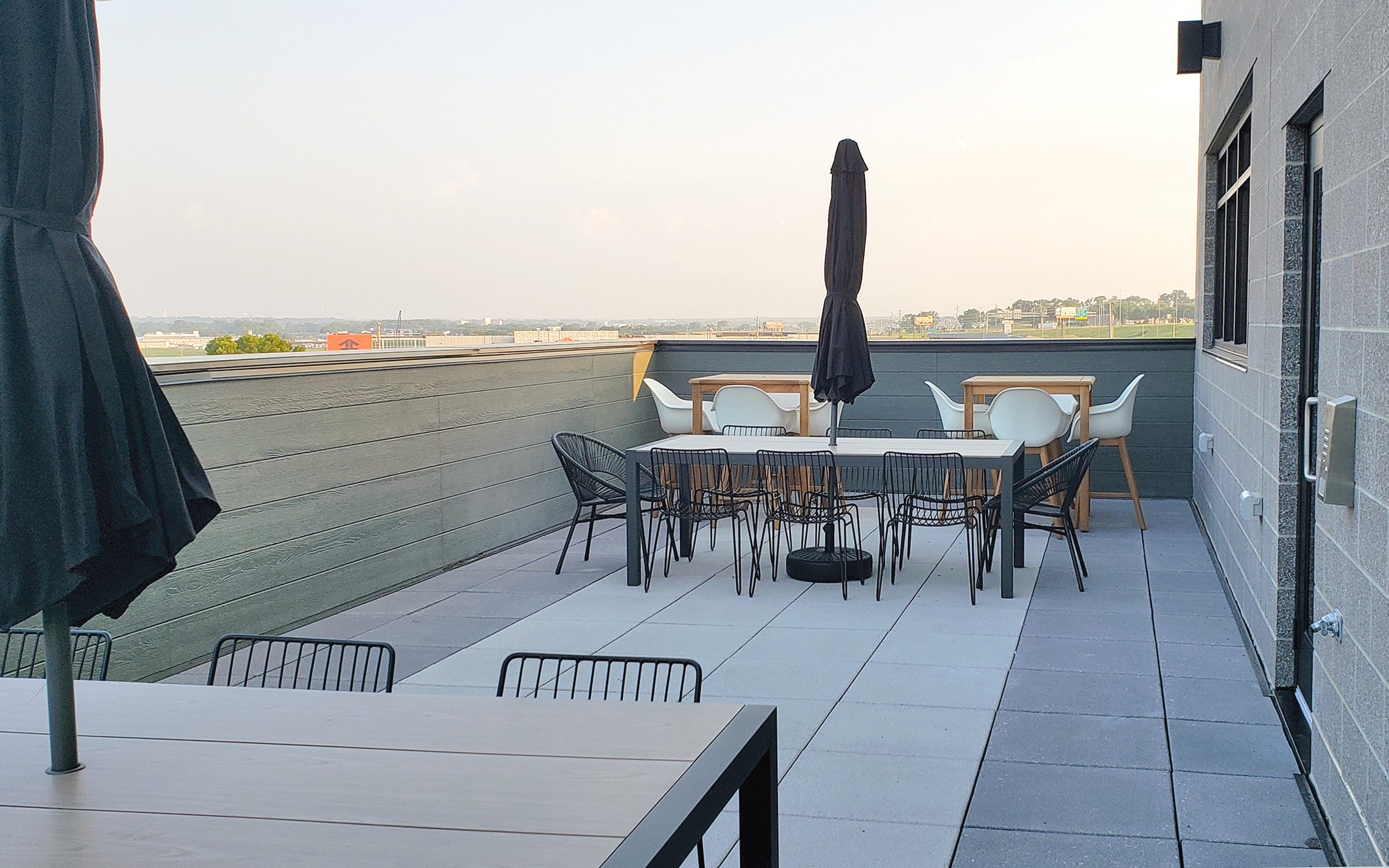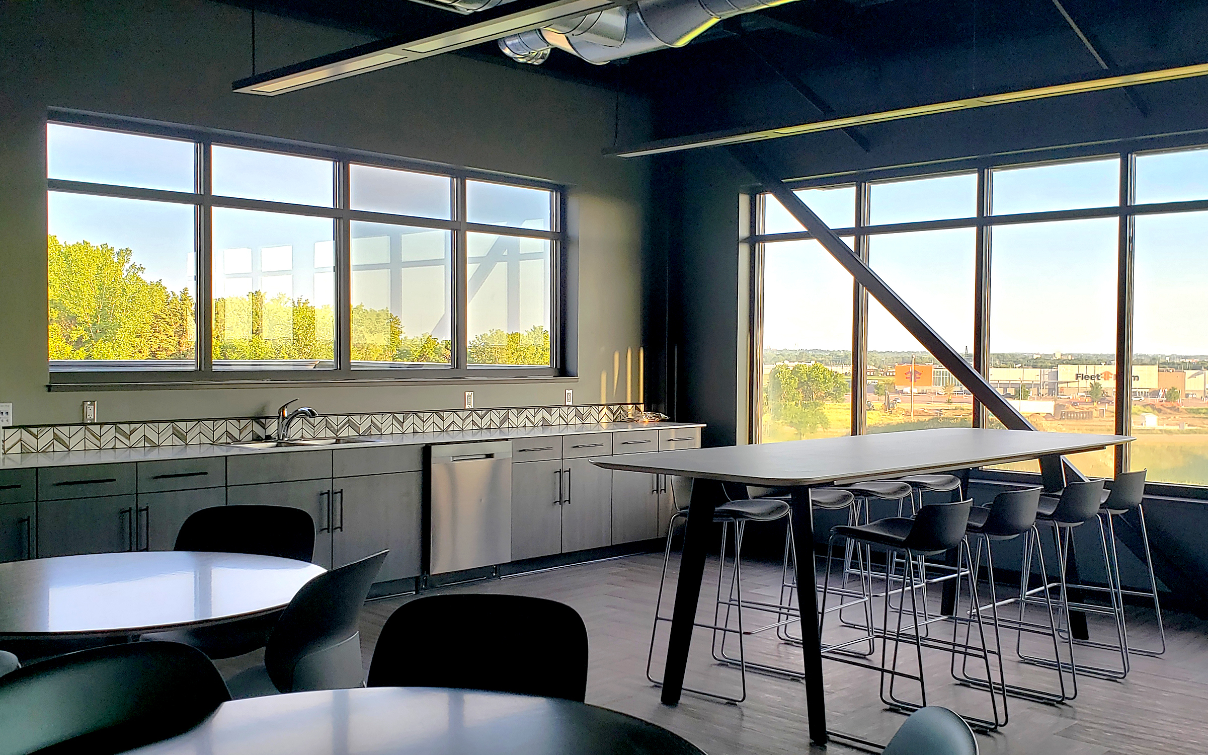 Several conference rooms within the building also capitalize on natural light, but they are equipped with retractable shading systems for times when video conferencing requires a controlled lighting environment. Most of the offices and workstations are designed to be open and welcoming, fostering collaboration among staff. Additionally, the staff breakroom extends out onto a rooftop balcony, providing a pleasant outdoor space for all employees to enjoy.
