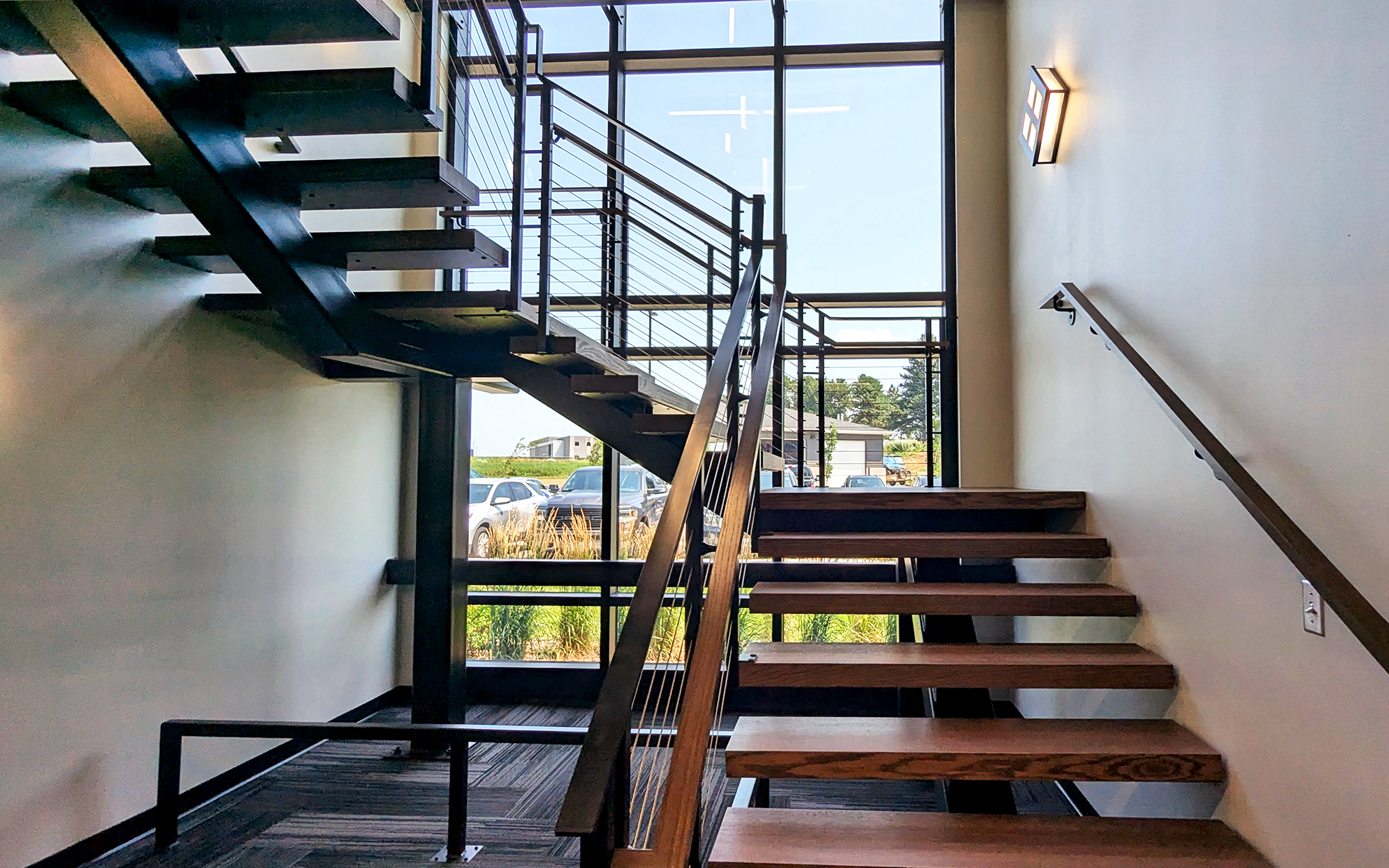 The new office is a 2-story building, encompassing approximately 12,000 square feet of thoughtfully designed space. The design of this building is a testament to the expertise within Banner, showcasing the work of several of our disciplines. The unique site presented high visibility and layout challenges that our Civil Engineers skillfully addressed. The building’s assembly highlights the exposed elements of all its structural components, creating a transparent and honest representation of the engineering behind the design.