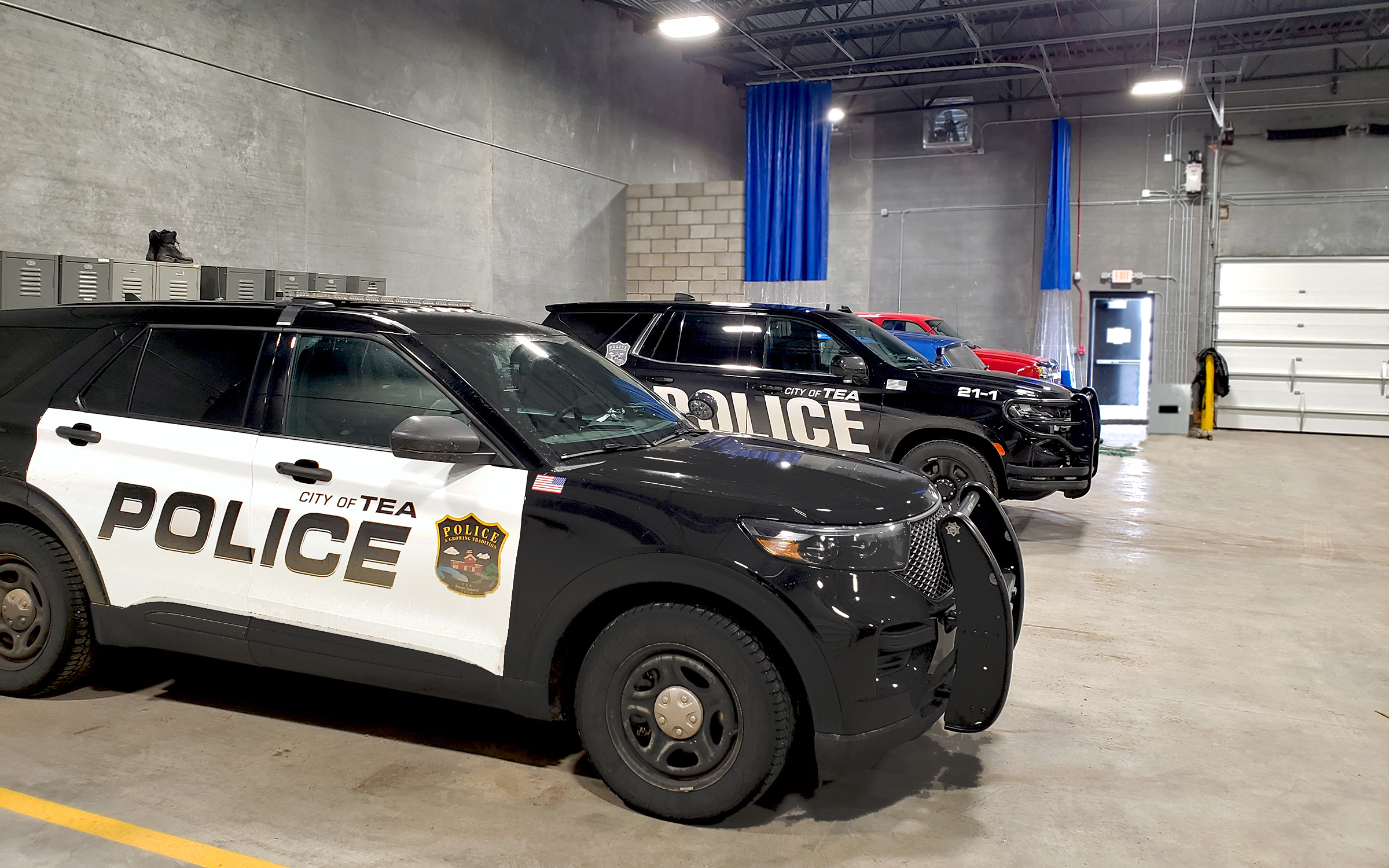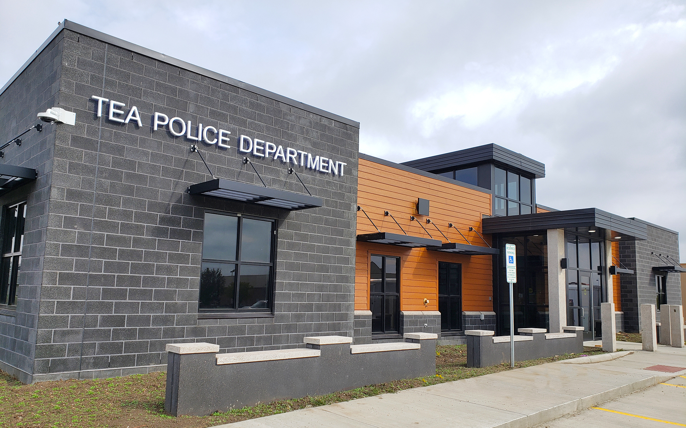 Banner was commissioned by the City of Tea, SD to help them in developing a state-of-the-art law enforcement facility. Our team worked directly with the City and police staff to understand their program requirements and design a safe, inviting, and functional facility to best serve the people and police of Tea. The Tea Law Enforcement Center comprises a 6500 sq. ft. Administration area constructed of steel and masonry components and a 4500 sq. ft. Patrol Garage formed using precast wall panels. The Administration area features a secure entrance/lobby area that provides a safe barrier between the public and staff while still allowing visibility and interaction. Other spaces include an evidence lab, secure vault, patrolman area, staff offices, training room, locker rooms, and multiple interview rooms for privacy. The locker rooms also double as tornado safe rooms in case of an emergency. The Patrol Garage has parking for eight squad cars, a wash bay, and an exercise room. Both the Administration area and garage are expandable to accommodate future growth. We are proud to have delivered a facility that aligns with the community’s law enforcement needs.